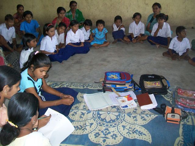 The purpose of the special schools is to prepare the CP (Cerebral Palsy) and MR (Mentally Retarded) children for the formal schools. At the moment we have 90 such children who are in special schools. All the children are freely given uniforms, bags, toys, and chart posters…etc. They are looked after by special teachers, who are trained for this noble endeavor. The Joyful Learning Methods are used extensively for creating interest and enthusiasm in children to join the formal schools. They are taught elementary things like parts of the body, names of fruits, vegetables, colours, birds, animals…etc so as to distinguish pictures from the real objects. The Village Education Committee (VEC) is formed to monitor the regularity of the children, involvement of the parents and maintenance of the schools. The nutrition provided by Vikas Deepti is also supervised by the VEC.